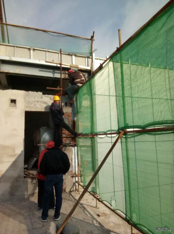 在施工階段,結(jié)構(gòu)布置的位置要進(jìn)行反復(fù)的核實(shí),確保立柱做在承重構(gòu)件上(采用相關(guān)的設(shè)備工具依照原結(jié)構(gòu)圖紙找出軸線位置,結(jié)合鋼結(jié)構(gòu)施工圖找出預(yù)埋件位置,打孔植栓安裝預(yù)埋件)施工時(shí)還應(yīng)做好防雨措施,因安裝構(gòu)件是需要破壞原屋面防水、安裝預(yù)埋件時(shí)打孔也會(huì)造成樓板的損傷,有效的做好防雨措施避免雨水滲漏對下層造成不必要的損失。